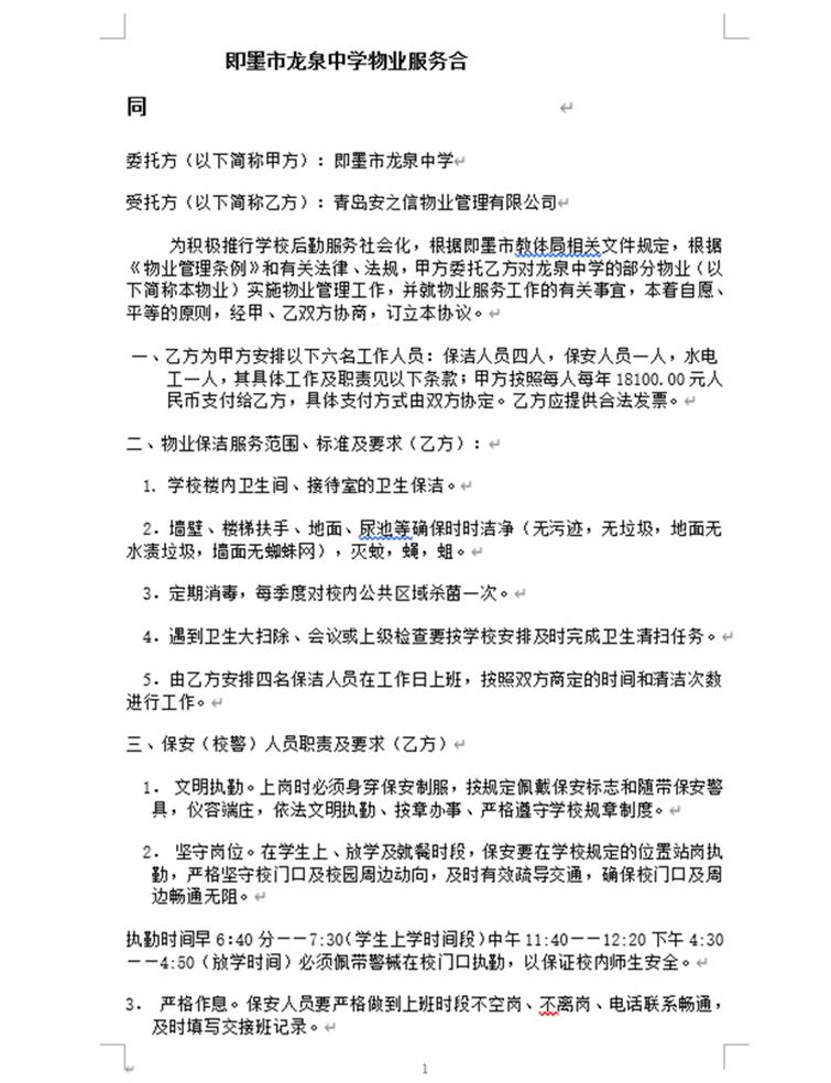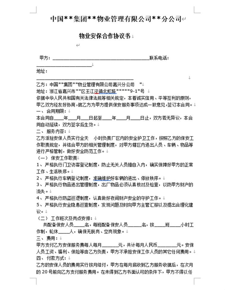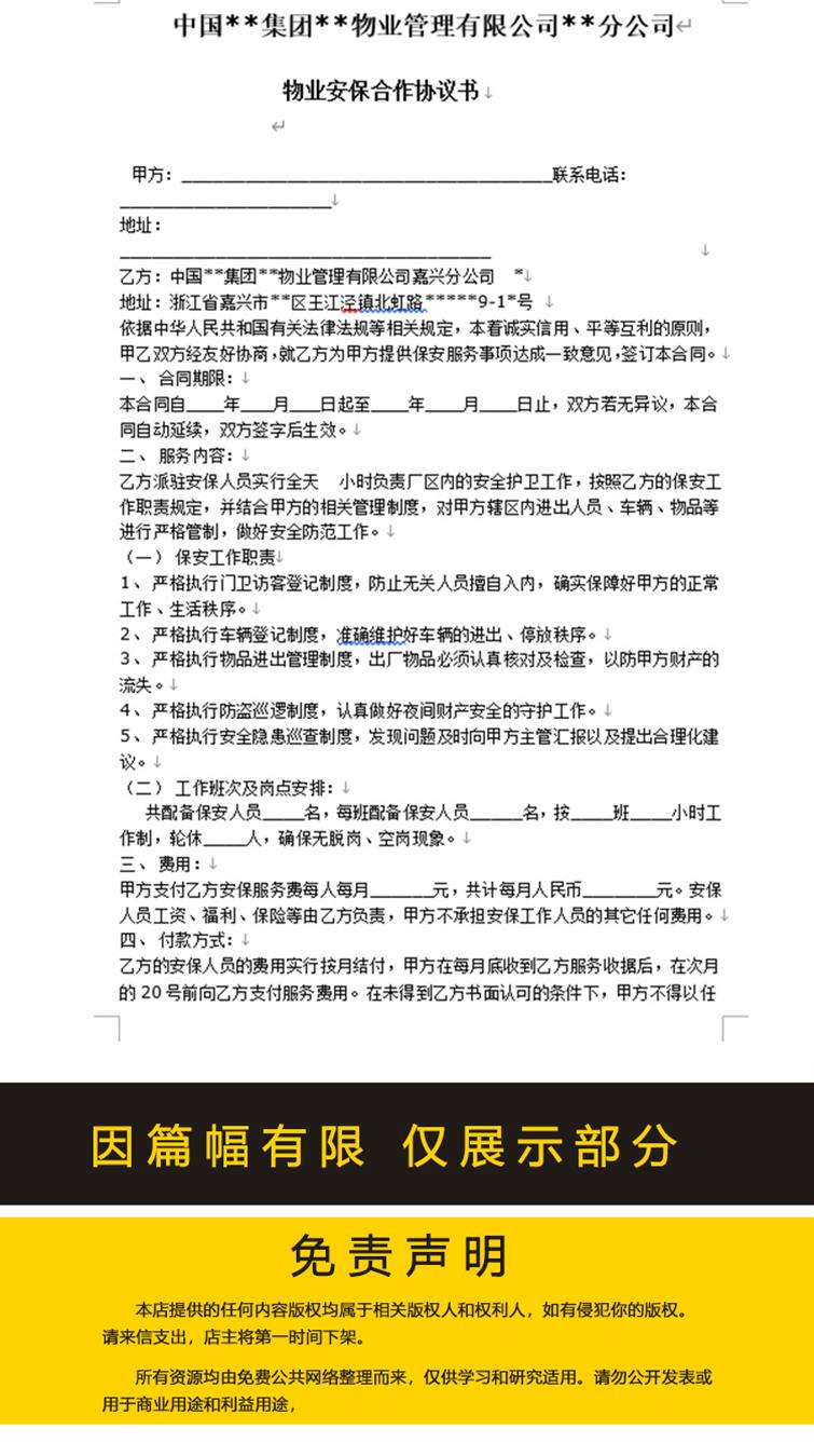 物业保洁服务保安安保管理合同模板范本电子版word非纸质新版通用